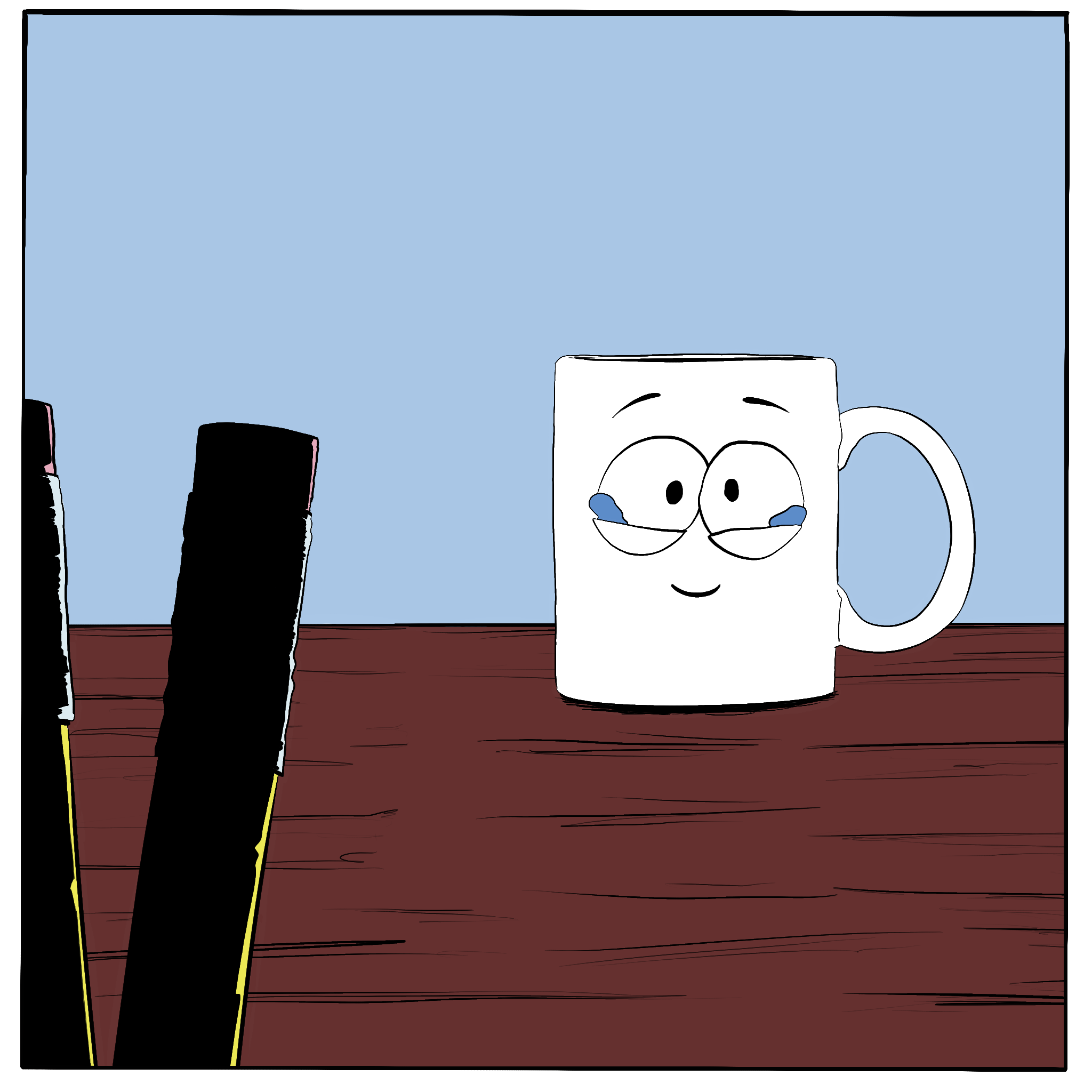 Stationery Stare Down Comic 24 Mar Written By Dean Young Comiccomicsillustrationmugspencilsstationerycomic panelfunnycomedyhumourjokescartooncartooning Dean Young